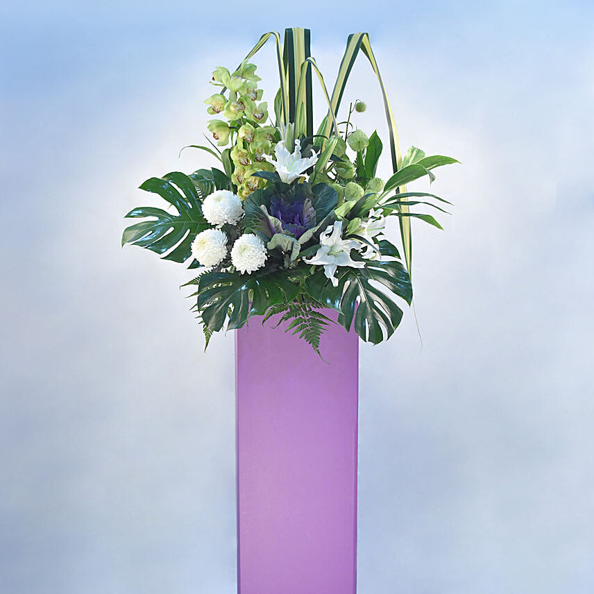 Refreshing Mixed Flowers Purple Stand