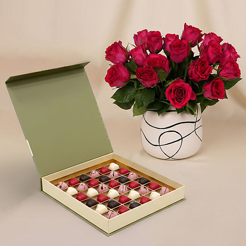 Romantic Dark Pink Roses for Valentine's Day n Chocolates