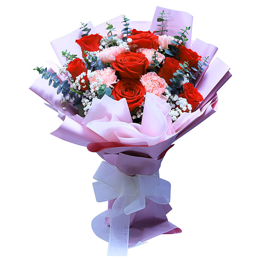 Rose & Carnation Bouquet For Valentines