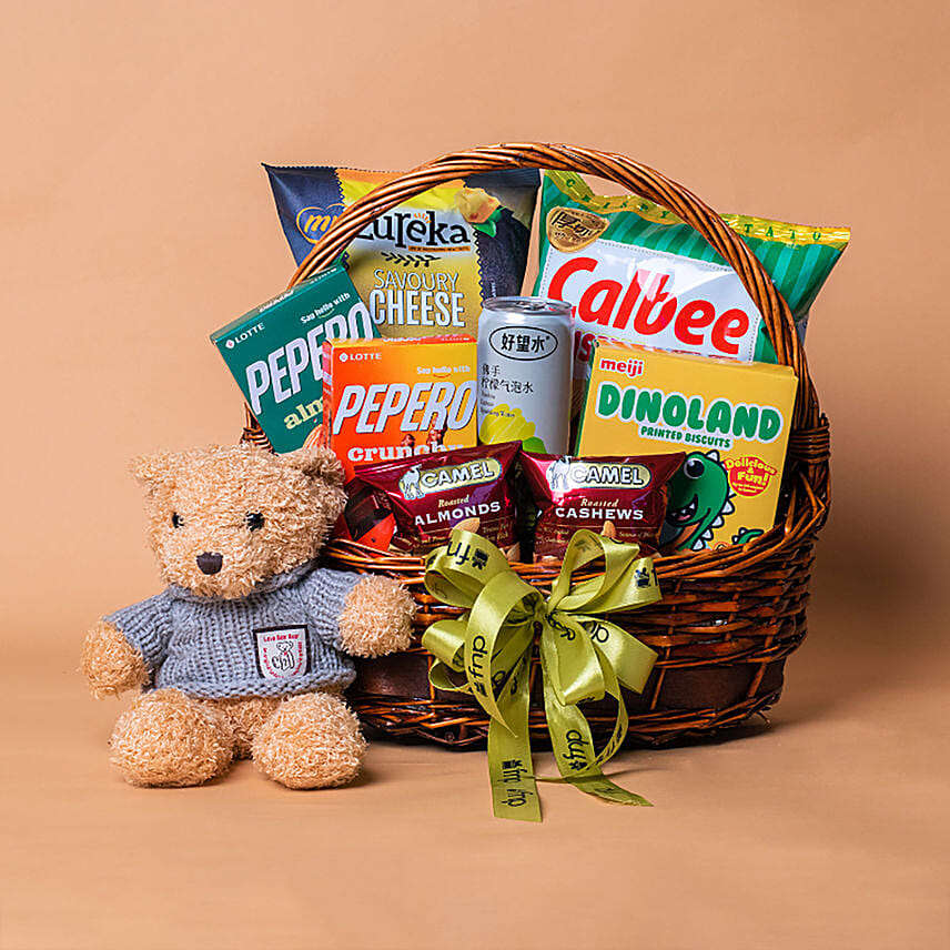 Snacks Treats Basket With Teddy