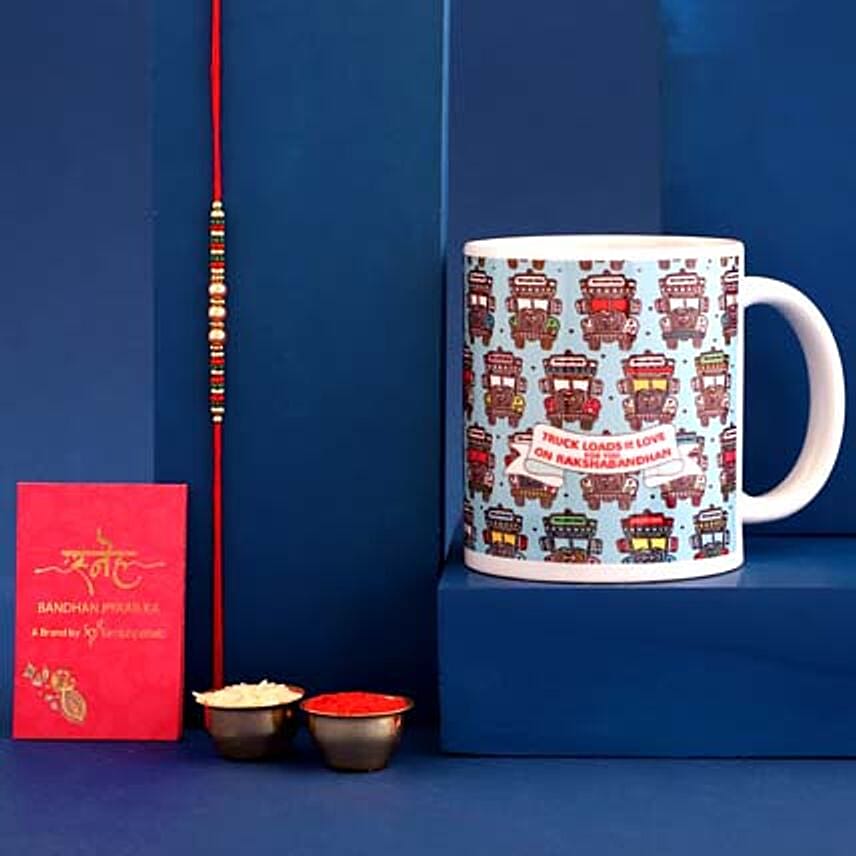 Sneh Colourful Pearl Rakhi with Printed Mug