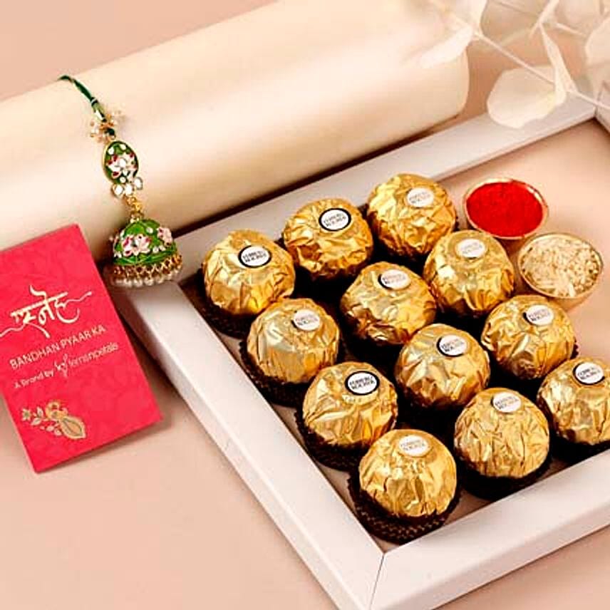 Sneh Designer Lumba Rakhi & Ferrero Rocher Box