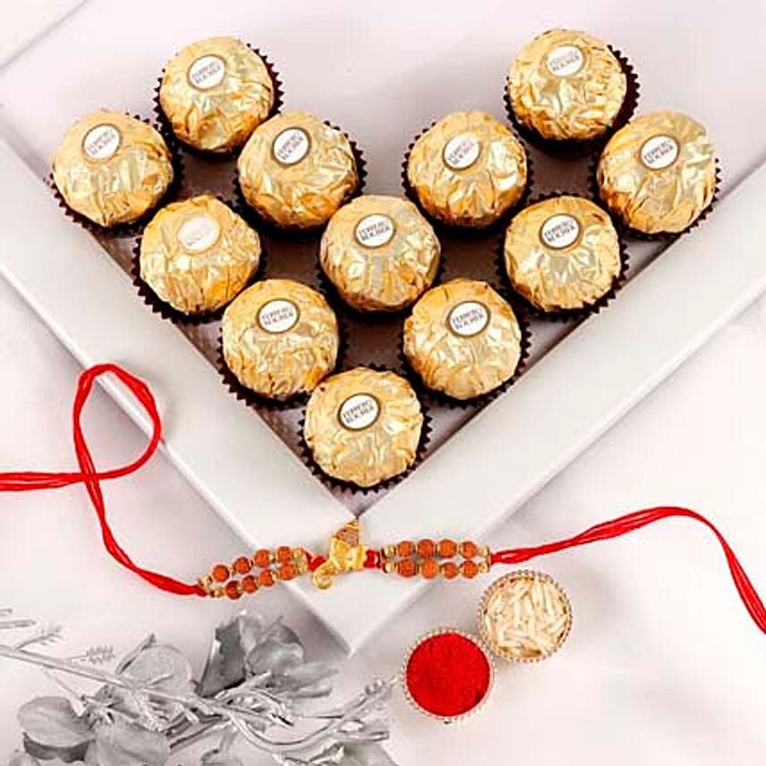 Sneh Elegant Rudraksha Rakhi & Ferrero Rocher Box
