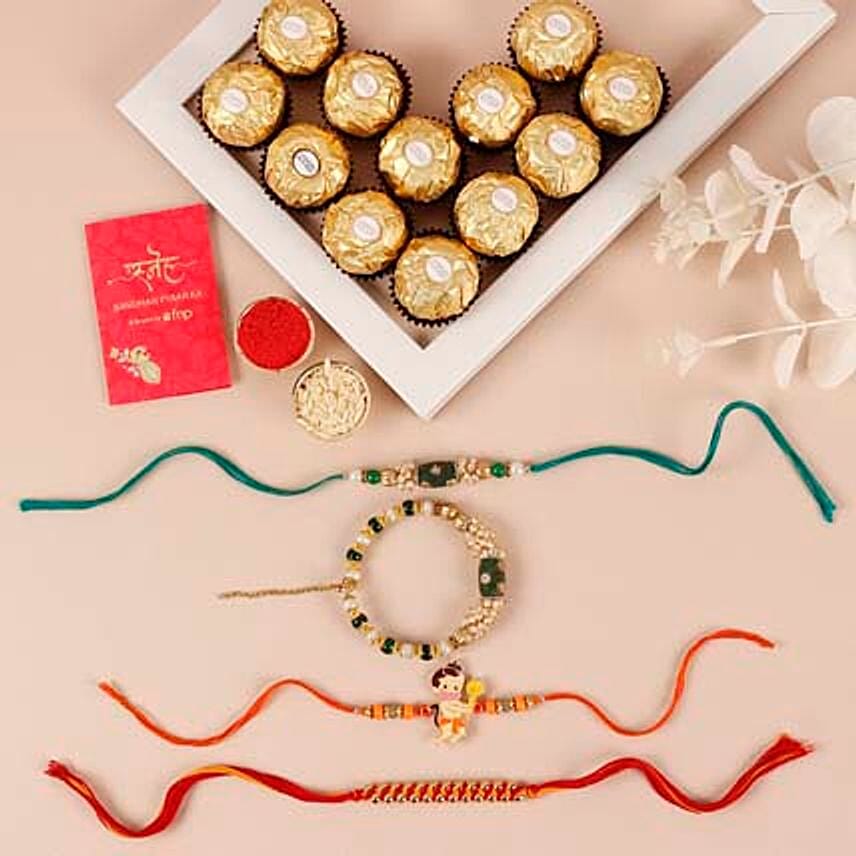 Sneh Enchanting Family Rakhi Set & Ferrero Rocher Box