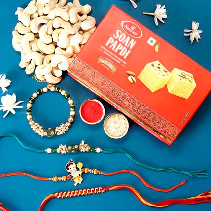 Sneh Enchanting Rakhis With Soan Papdi & Cashews