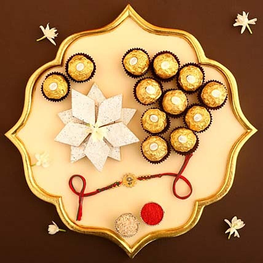 Sneh Gold Rakhi With Kaju Katli & Ferrero Rocher