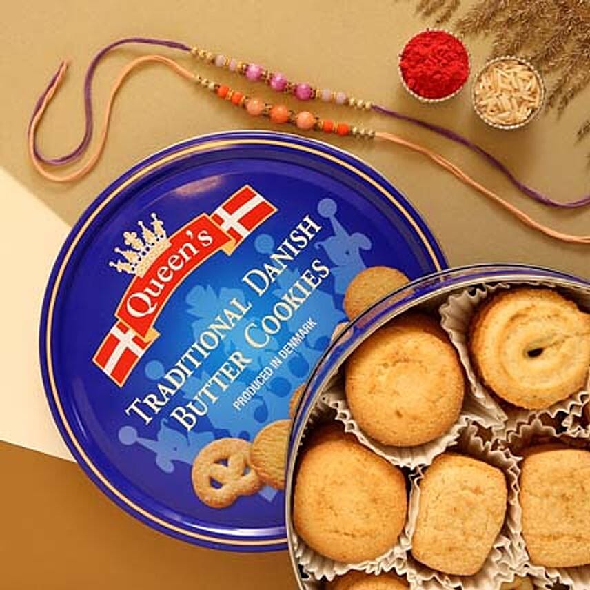 Sneh Peachy Rakhi Set & Danish Butter Cookies