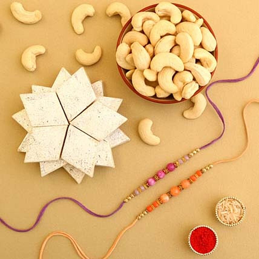Sneh Peachy Rakhis With Cashews & Kaju Katli