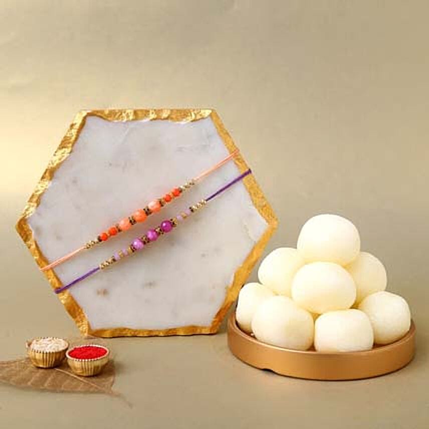 Sneh Pretty Beads Rakhi Set & Rasgullas