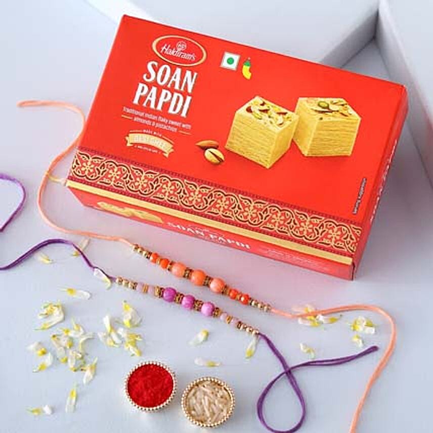 Sneh Pretty Beads Rakhi Set & Soan Papdi