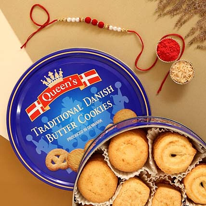 Sneh Red White Pearl Rakhi with Danish Cookies