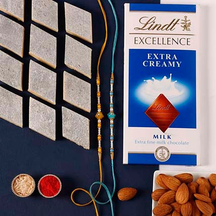 Sneh Vibrant Set Of 2 Pearl Rakhi & Sweet Treats