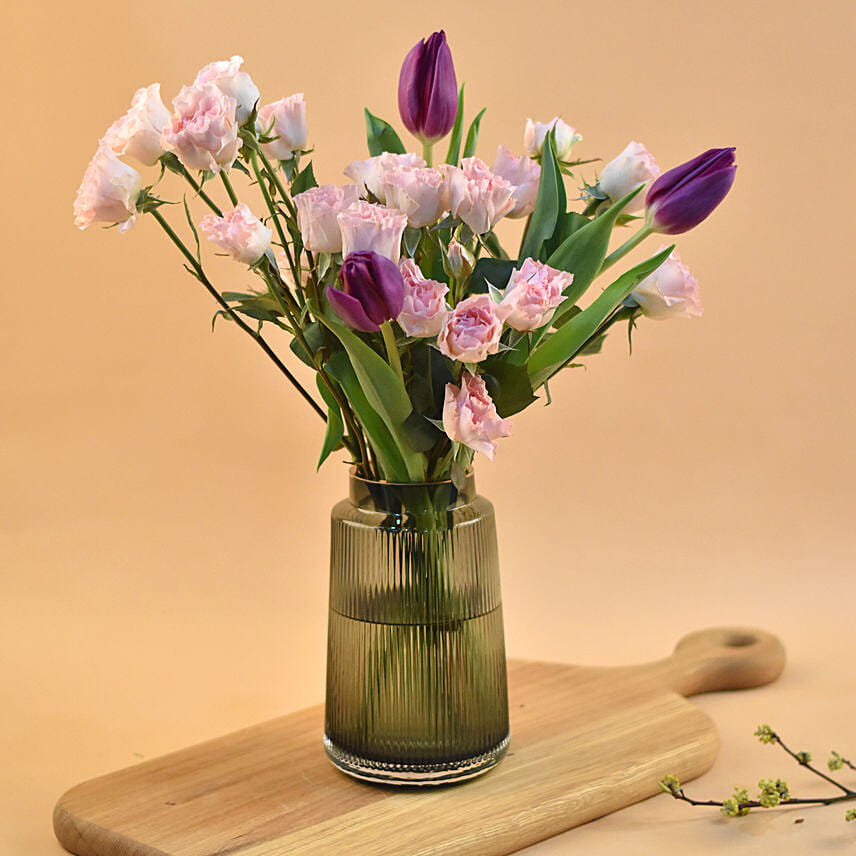 Spray Roses & Tulips Designer Vase