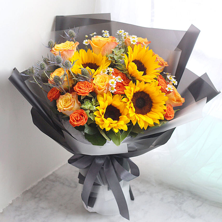 Striking Mixed Flowers Beautifully Wrapped Bouquet