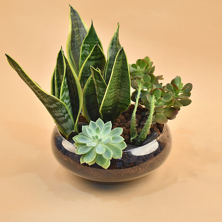 Succulents Round Glass Vase