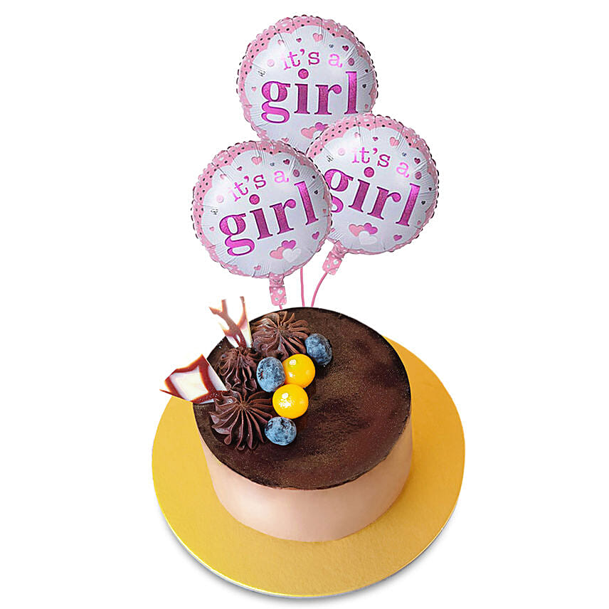 Tempting Chocolate Cake With It's A Girl Balloons Set