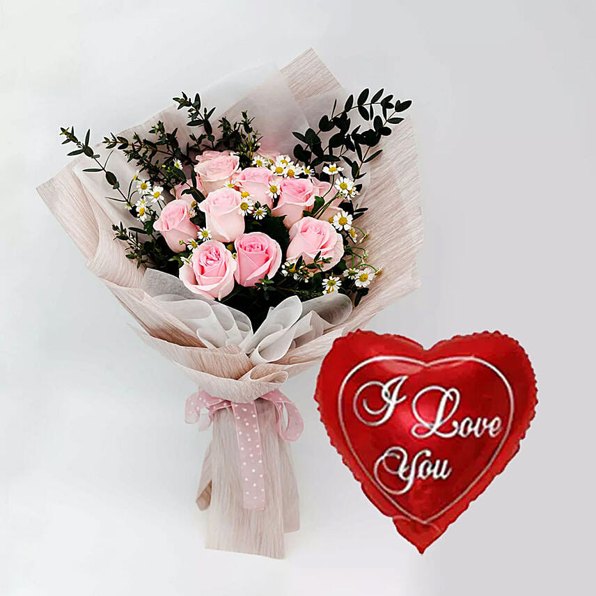 Titanic Rose Chamomile Bouquet With I Love You Balloon For Valentines