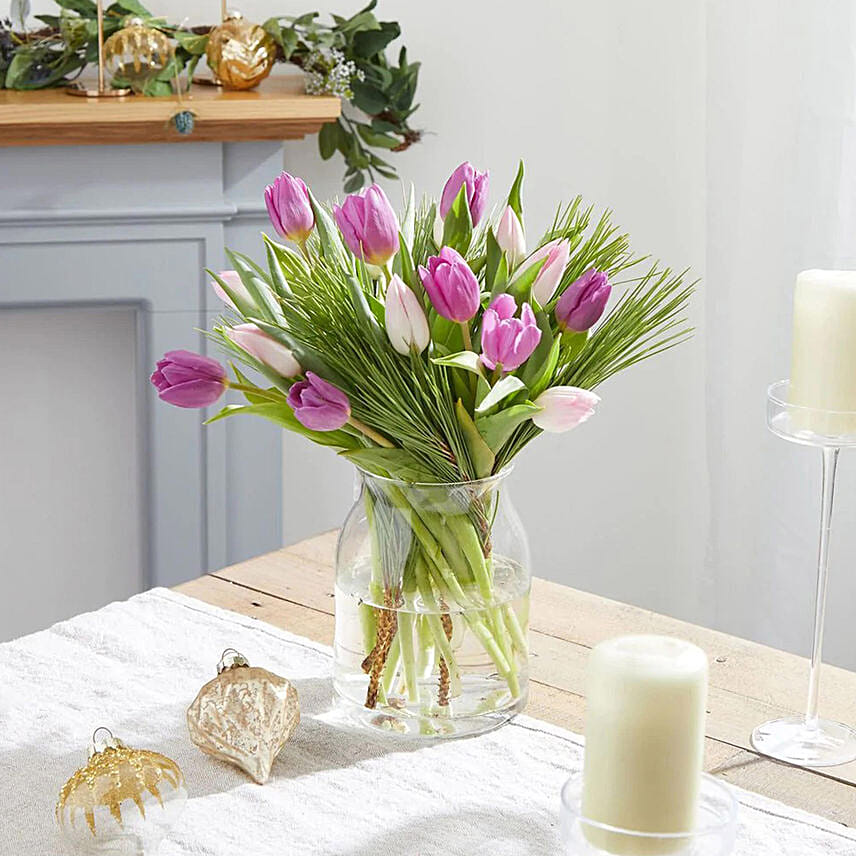 • Pink and purple tulips, symbolising perfect and eternal love, make an enchanting gift for someone who is always in your heart.