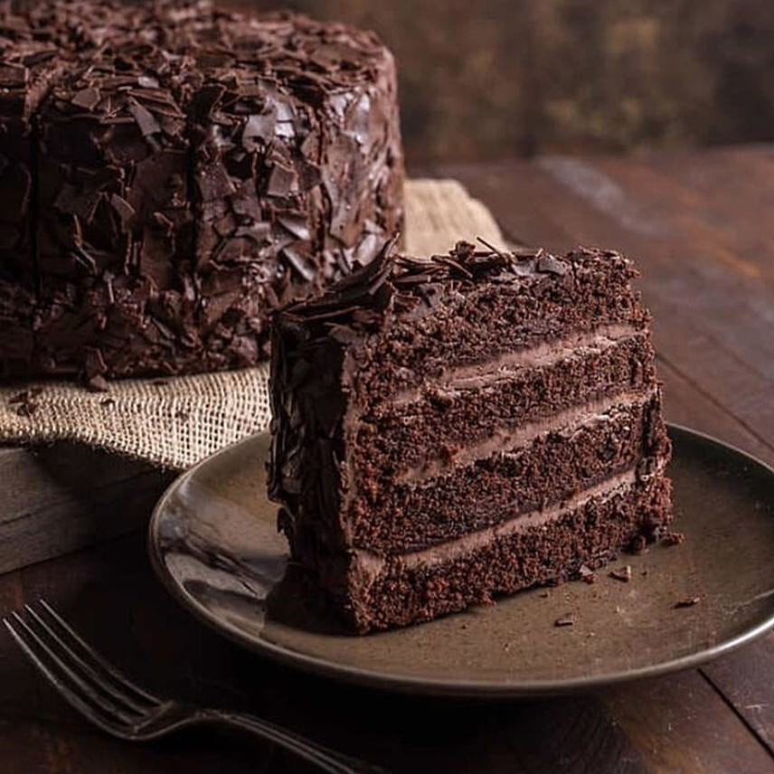 • To the ultimate chocolate lover - your dream cake! Four split layers of our rich chocolate cake, filled with a smooth milk chocolate mousse, finished in chocolate ganache & covered in dark chocolate bark pieces. This cake is the thoughtful gift idea that’s perfect for family, friends, coworkers, or to anyone you care about in your life. Generously sized precut slices, A cake lover’s dreams come true!