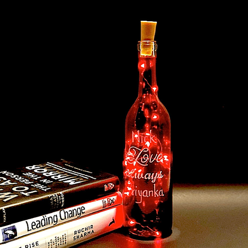 This beautiful keepsake wine bottle with handpainted writing is worth giving as gift. The bottle comes with a string light attached to the bottle cap. Please mention the names to be paint written (max 8 characters)