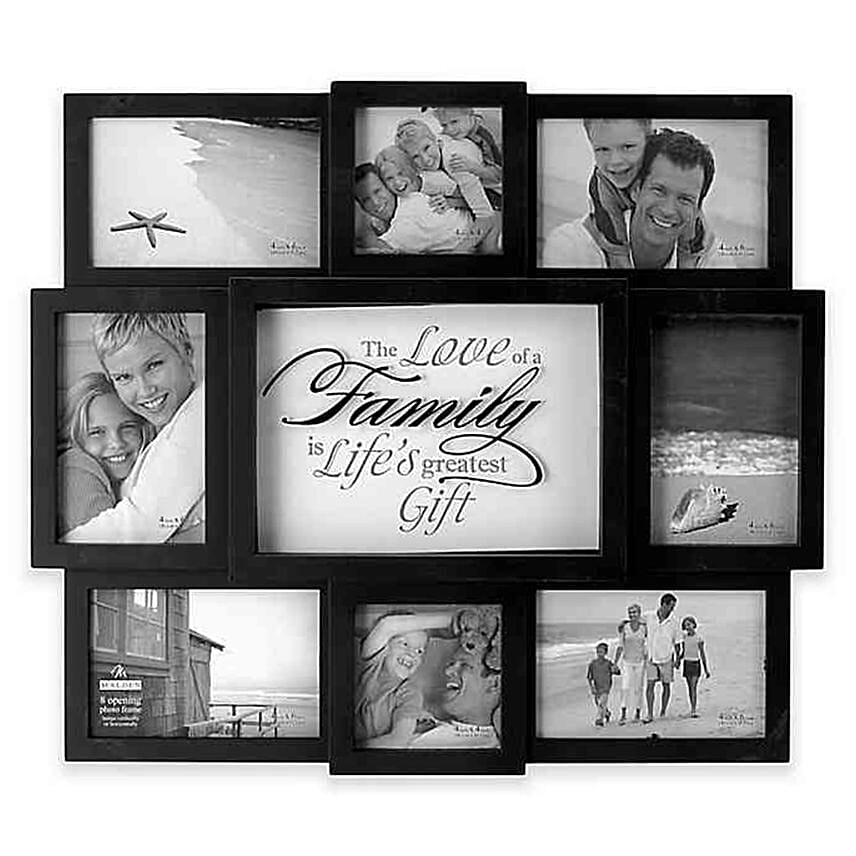 Showcase your family photos in style with "The Love of Family" 8-Photo Collage Picture Frame. The whole family will look great as they look back at fond memories of times spent together. Classic black finish complements any style. Frame is of Plastic with Wall-mount and Measures 19.75" L x 17" W.