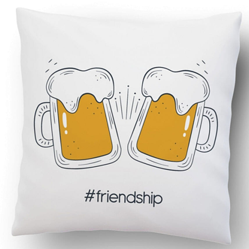 Cheers your friend this super Friendship cushion Cushion size 12"x12", includes cover and cushion