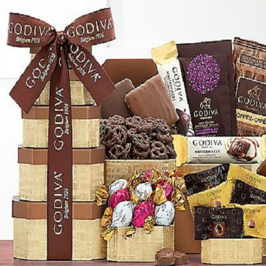 • This dazzling gift tower is a sure way to any chocolate lover's heart.