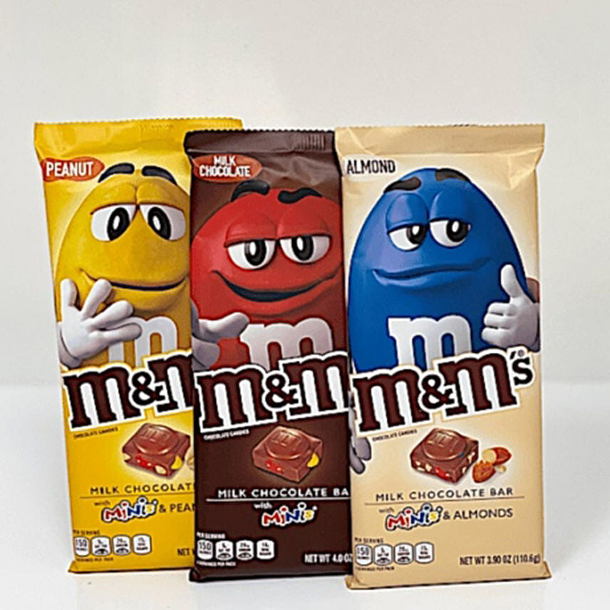 • The perfect gift for any occasion having an assortment of M&M favorite bars of assorted flavors like Peanut, Milk Chocolate and Almond, 100gm each