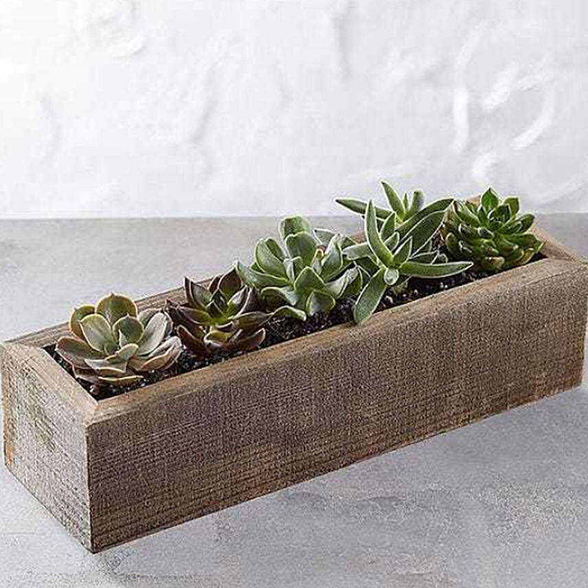 • Five unique varieties are designed in a reclaimed wood container with a gently stressed look for added charm. Easy-to-care for, it’s a great addition to the home or office.