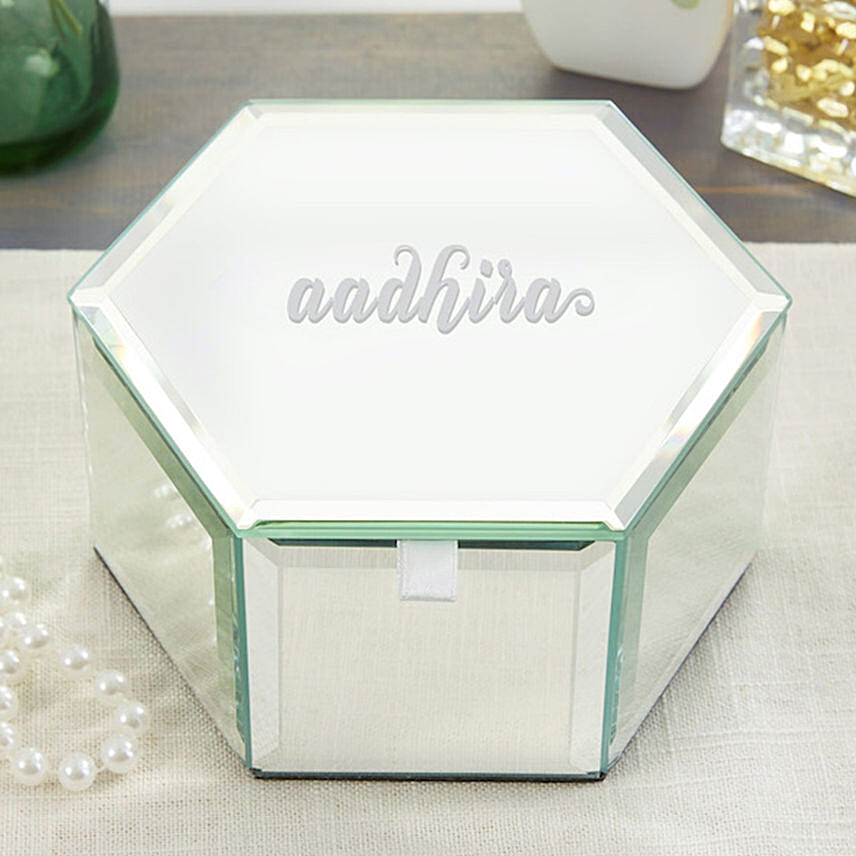Create a stunning gift for a special woman in your life with our Classic Celebrations Personalized Hexagon Jewelry Box. This elegant jewelry box features a mirrored finish all around and removable interior tray, creating a unique gift.