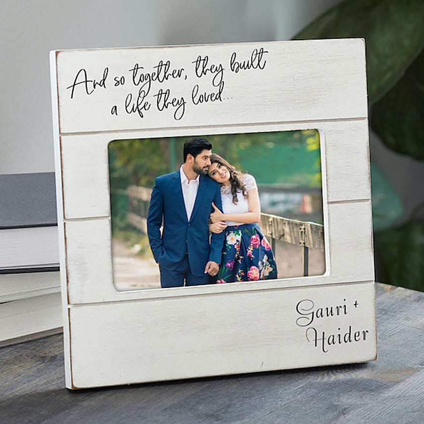 Love is one of the first foundations built between two people. Celebrate that special bond with our exclusive Together They Built A Life Personalized Picture Frame. This farmhouse inspired frame adds a warm and rustic touch to any home.