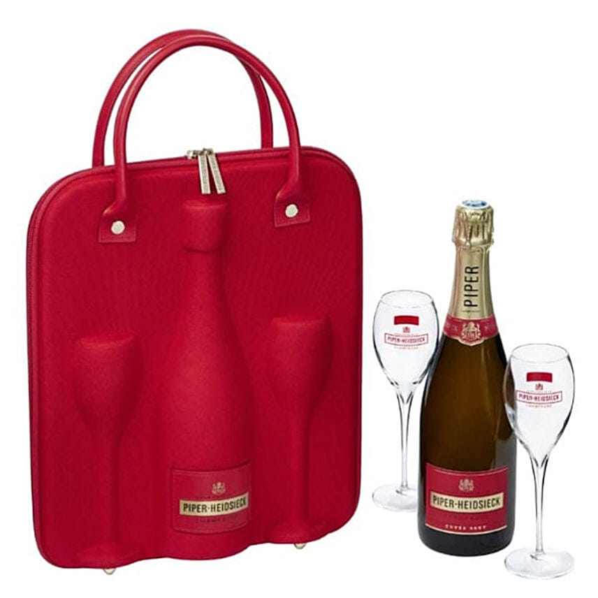 This Champagne teases and allures us with its festive, light-drenched, pale gold shimmer and joyful display of neat, lively bubbles. Notes of almond and fresh hazelnut accompany the precise ascent of its bubbles. It is lively, subtle and light, leaving a deliciously incisive sensation of smoothness, marked by the pureness of fresh pear and apple and a delicate hint of citrus fruits. Travel Case with 2 Champagne Flutes.