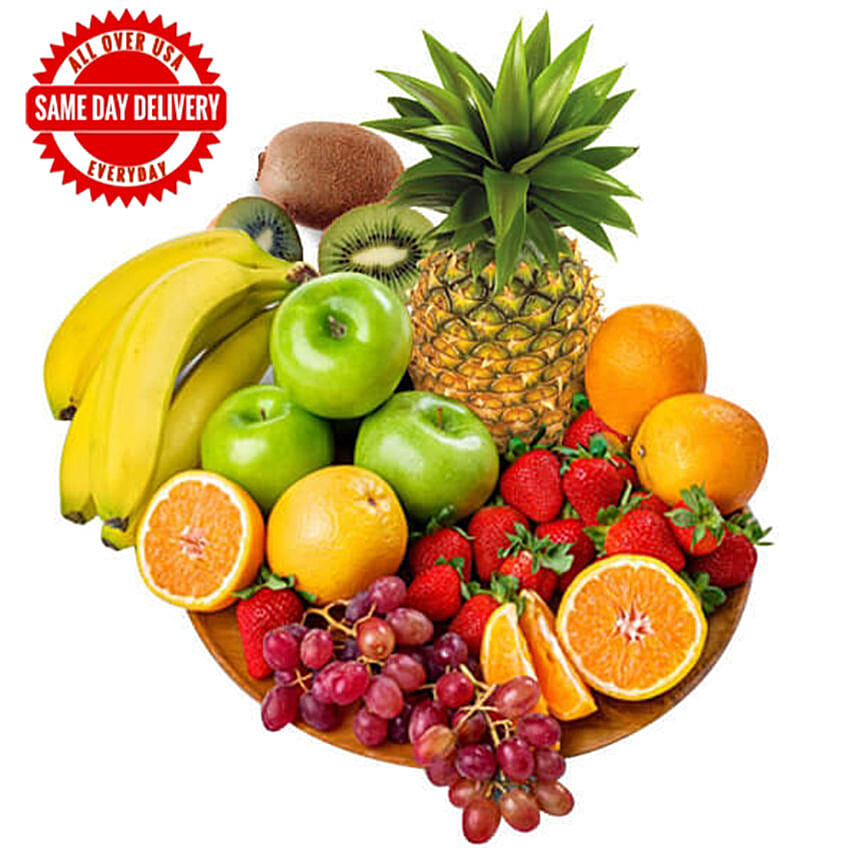 Premium Fresh Fruit Hamper is a healthy and thoughtful gift. Includes delicious and healthy seasonal fruit of 3kg + like apples, pears, oranges, banana, kiwi, pineapple, strawberry, grapes etc in a gift bag delivered locally. Fruit selections might vary based on seasonal availability.