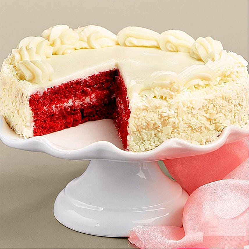 7" Red Velvet Cake. Flavorful cream cheese icing and Red Velvet crumbs generously cover the most luscious red chocolate cake. Two rich layers of red chocolate cake, fill and covered with the finest, pure cream cheese frosting, and then garnished with white chocolate sprinkles around the sides.