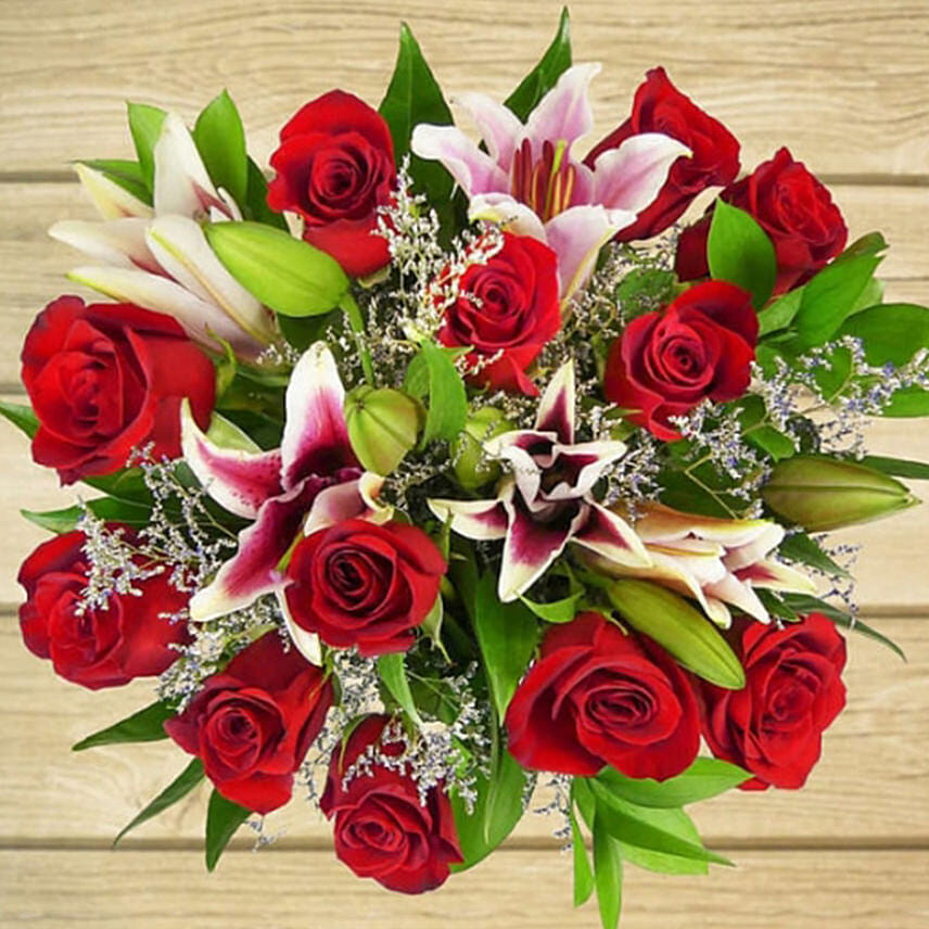 • Romantic Garden Bouquet is an elegant and striking gift for someone special. Arranged with care and comprised of radiant red roses and upscale fillers and greens, it is a refined and sophisticated way to show someone you care. Send your thoughtful sentiments wrapped up in these luxurious blooms.