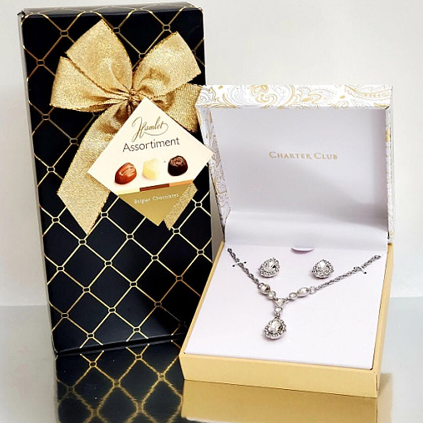 Silver Tone Crystal Jewelry Gift Set