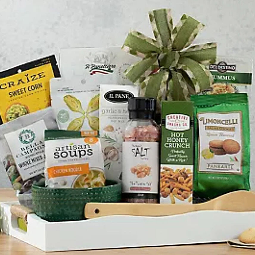 • Hearty chicken noodle artisan soup mix with old-fashioned homemade flavor and plenty of noodles will take the chill out of a cold day; hot honey crunch mix, hummus, crackers, bread sticks and himalayan salt are the perfect complements.