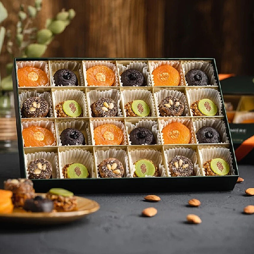The Superfood Parfait collection is made from nutritious superfoods, it checks all boxes - supremely healthy, tasty, and luxurious. It is the perfect assortment, bringing together elegant ingredients in unique combinations. It contains 1. Matcha Quinoa Energy Bites - roasted quinoa, pistachio and figs come together in this subtle bite-sized delight, topped off with an exquisite Japanese matcha disk 2. Dates with Pine and Chia Mélange - a traditional recipe with dates, pine nuts and chia seeds 3. Apricot Flax Seeds Petite - this magical delicacy is the perfect blend of flax seeds and a rich apricot-infused marzipan 4. Berry Açaí Figs - Açai berries, blueberries and figs - three fine fruits come together in this delectable combination. Box Weight & Dimensions: 10 x 7 x 1.5 inches; 1.3 Pounds.