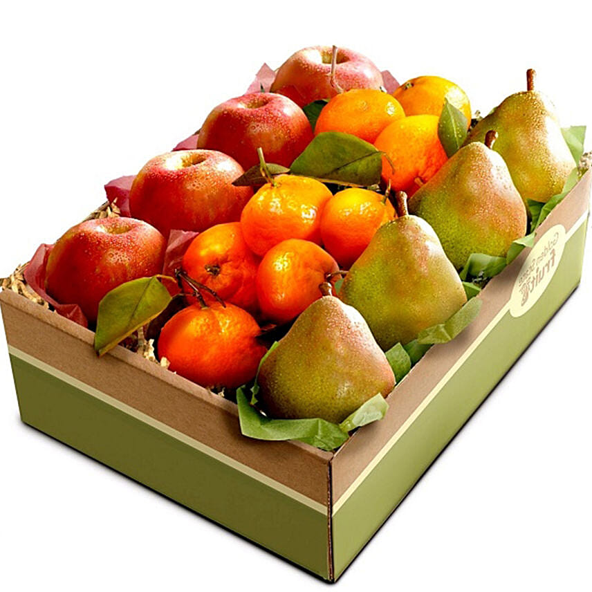 Trio of fresh seasonal fruits consisting of tender, sweet, and petite oranges, apples and pears. Approx shipping wt: 3.1 Kg