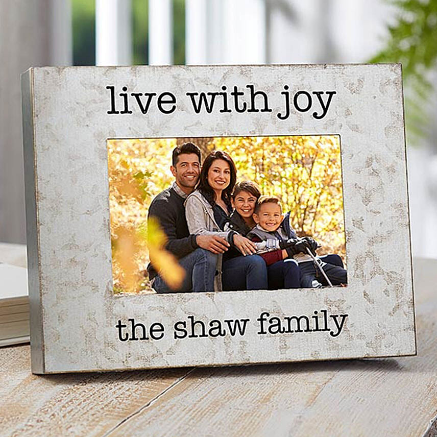 The Typewriter Statements Galvanized Box Picture Frame will display your favorite photo and can be personalized with any sentiment printed around the opening.