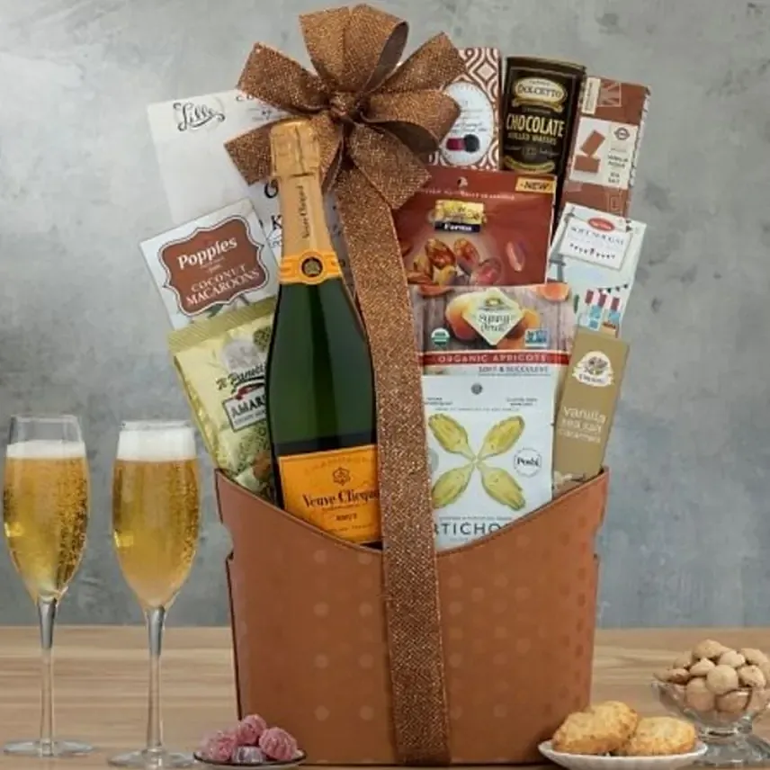 • A fitting collection of vanilla sea salt caramels, Le Preziose blackberry and raspberry fruit jelly candy, Setton Farms chipotle BBQ pistachios, organic dried appricots, Poppies coconut macaroons and more creates this distinctive gift.